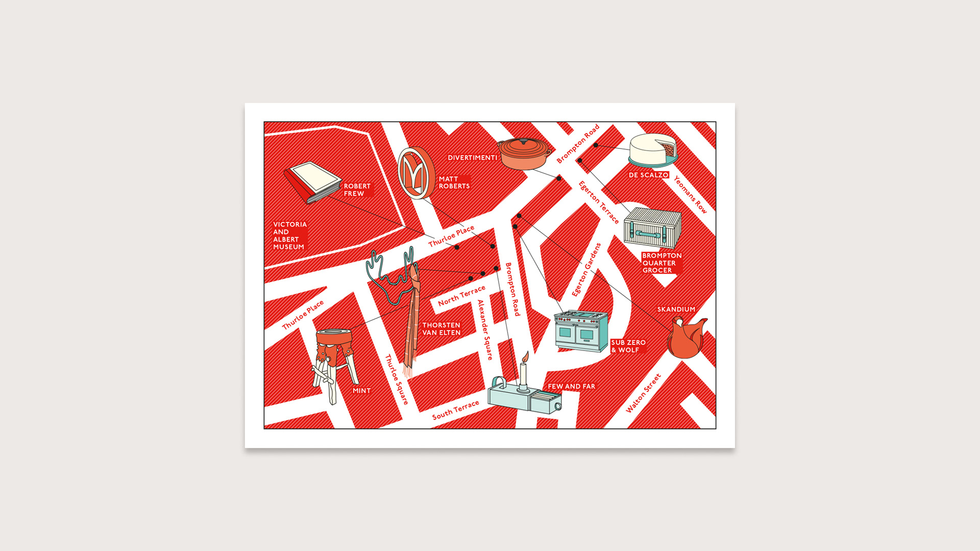 A series of illustrated maps to promote the Brompton Design District – a cultural and creative hub in West London.