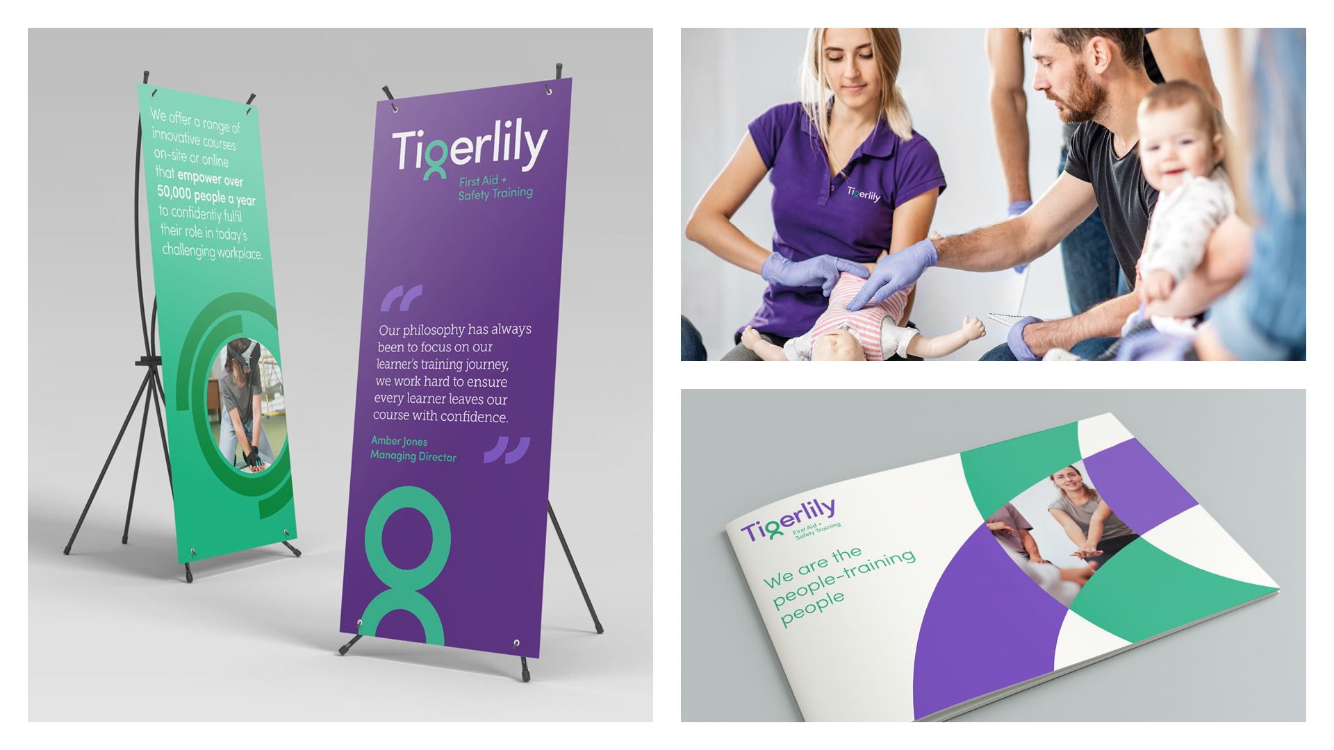 Brand evolution for a nationwide first aid and safety training business as it expanded into new sectors and broadened its course offering. The refreshed identity brings a sense of confidence and clarity. The new logo has evolved the former parent/child symbol in the ‘g’ character into a simplified figure, reinforcing Tigerlily’s people-first approach. Comprehensive guidelines and templates were developed to support consistent rollout across all communications.